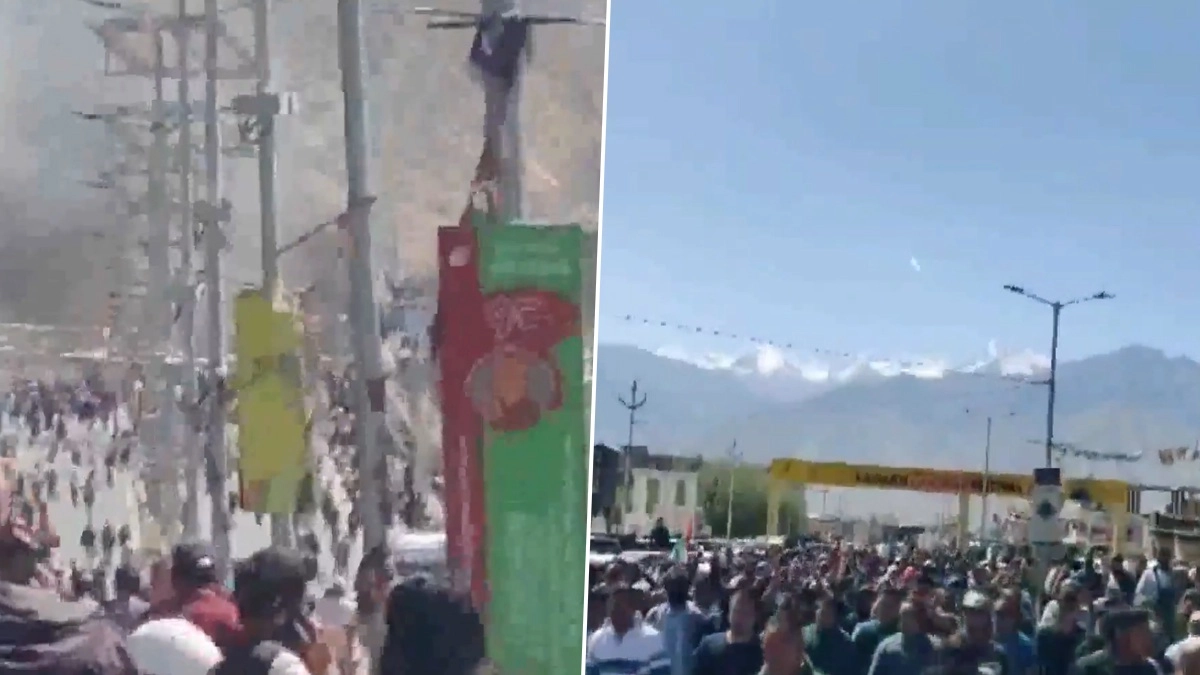 #WATCH | Leh, Ladakh: A massive protest by the people of Ladakh demanding statehood and the inclusion of Ladakh under the Sixth Schedule turned into clashes with police in Leh. pic.twitter.com/VM3ICMkl4K