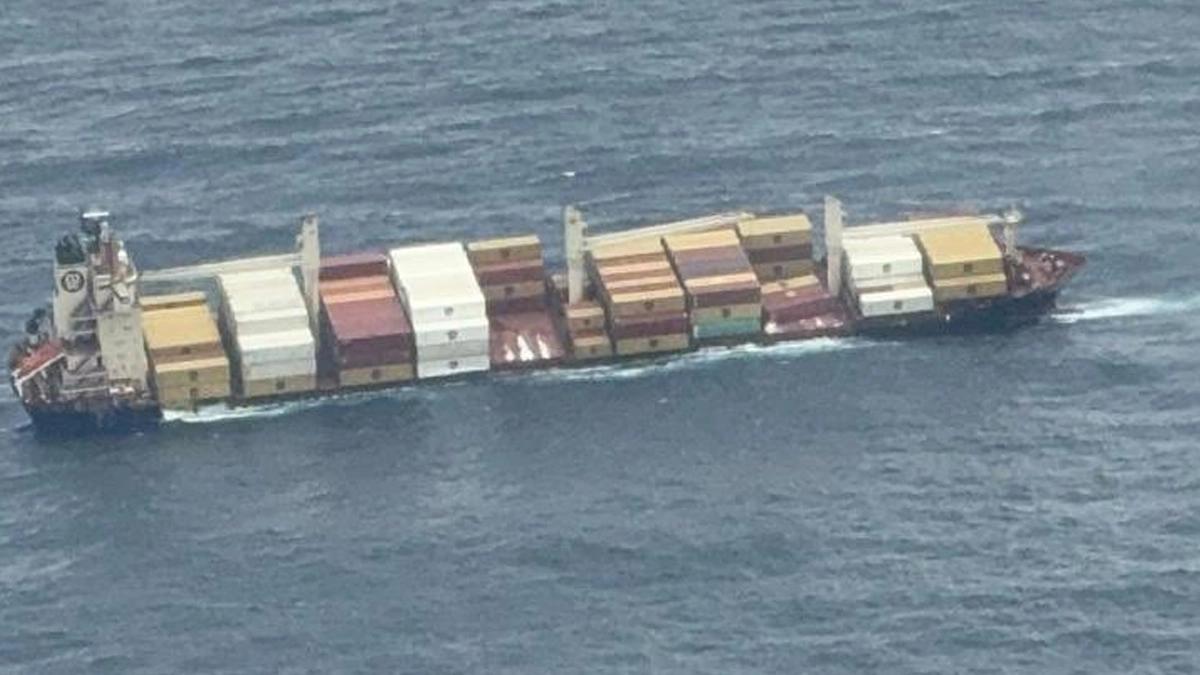 Some containers have fallen due to vessel tilting,… https://t.co/rqIxYVgMLH pic.twitter.com/RYkHgNVPQs