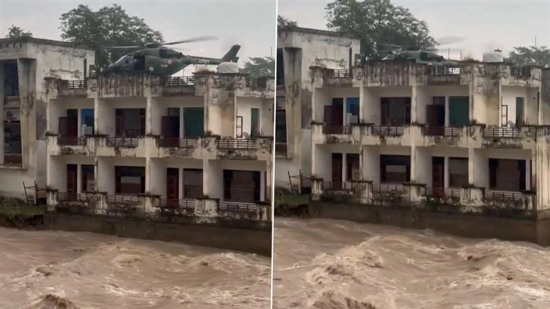 ভারতীয় সেনার হেলিকপ্টার উদ্ধার কাজ শেষ করার পরপরই গোটা বাড়িটি বন্যার জলে তলিয়ে যায় মুহূর্তের মধ্যে...
