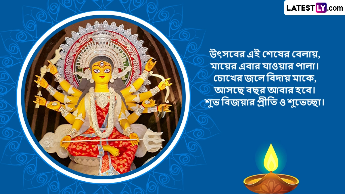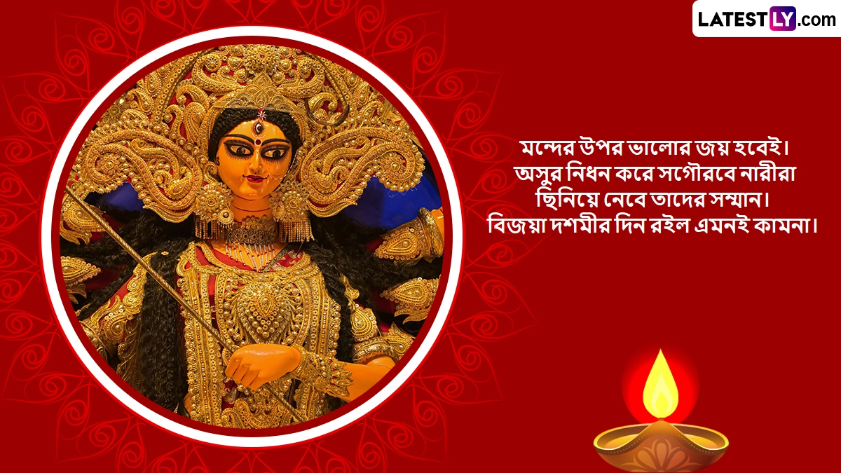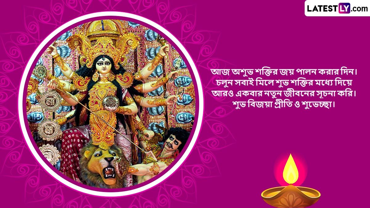 দেখতে দেখতে চলেই এল মন ভার করা নবমী নিশি। আজকের রাত ফুরোলেই মায়ের বিদায় নেওয়ার পালা। কারণ কালই যে বিজয়া দশমী। বিজয়া দশমী উপলক্ষে পরিবার পরিজনের সকলে সম্মিলিত হন। ছোটরা বড়দের প্রণাম করে। বড়রা ছোটদের আশীর্বাদ করেন। বন্ধুদের মধ্যে প্রীতি বিনিময়ের পালা চলে। কিন্তু এই বিজয়া দশমীর আরেকটি বড় দিক হল প্রিয়জনদের শুভেচ্ছাজ্ঞাপন। ফেসবুক, হোয়াটসঅ্যাপসহ নানা মাধ্যমে শুভেচ্ছাবার্তা লিখে পাঠানোর রীতি এই দিন। আপনার প্রিয়জনকেও একই ভাবে জানান শুভেচ্ছা। কী লিখবেন? রইল লেটেস্টলি বাংলার শুভেচ্ছাপত্র-