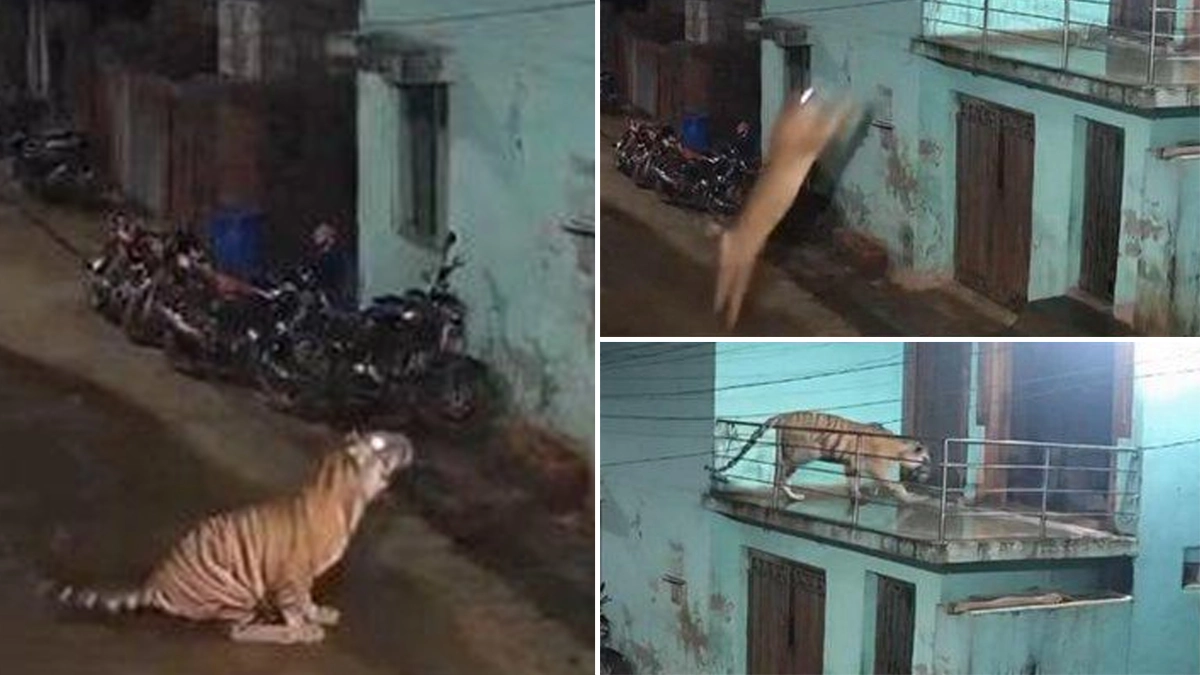 In a small Balinese village, a fully grown tiger was caught on CCTV leaping onto a second-floor balcony - clearing an 18-foot height in a single bound. pic.twitter.com/nTvlXg8Tvj