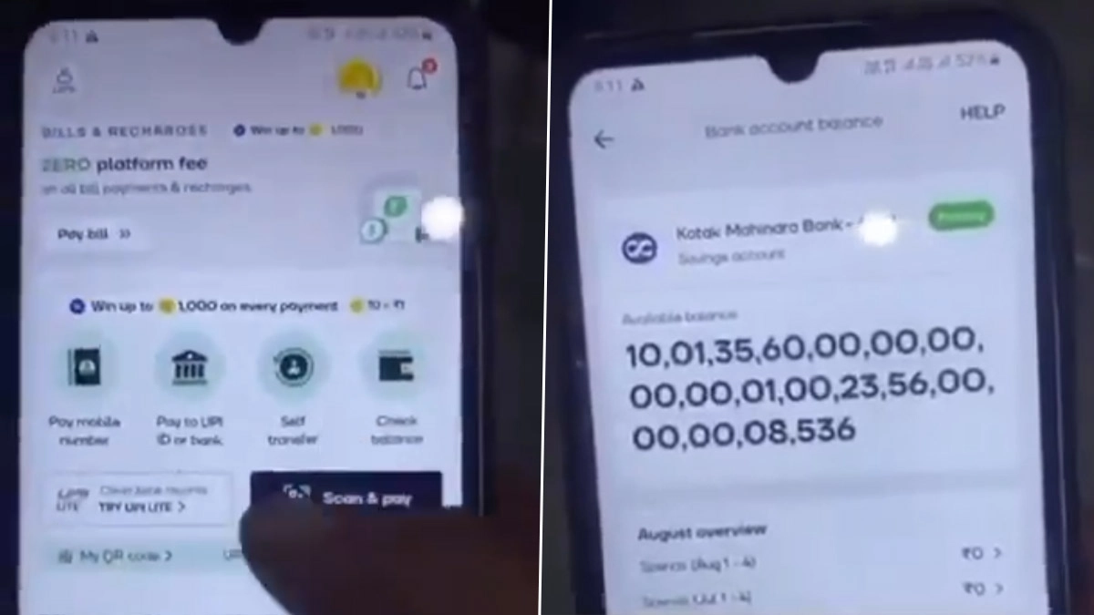 20-year-old in Greater Noida stunned as ₹10,01,35,60,00,00,00,00,00,00,01,00,23,56,00,00,00,00,299 appears in his Kotak Bank account!