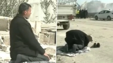 রবিবার সংবাদসংস্থা এএনআইয়ের (ANI) টুইটার পেজে একটি ভিডিয়ো (Video) পোস্ট হয়েছে। যাতে দেখা যাচ্ছে তুরস্কের (Turkey) নুরদাগি (Nurdagi) এলাকায় চারিদিকে যখন ধ্বংসস্তূপ সরানোর কাজ চলেছে তখন সেখানকার একটি রাস্তার উপর বসে নামাজ পড়তে দেখা যাচ্ছে এক ব্যক্তি (Man Offers Prayers)। বিপর্যয়ের কালো অন্ধকার ও হাহাকারকে উপেক্ষা করেই তিনি আল্লার কাছে ফের সবকিছু স্বাভাবিক করে দেওয়ারই যেন প্রার্থনা করছেন।