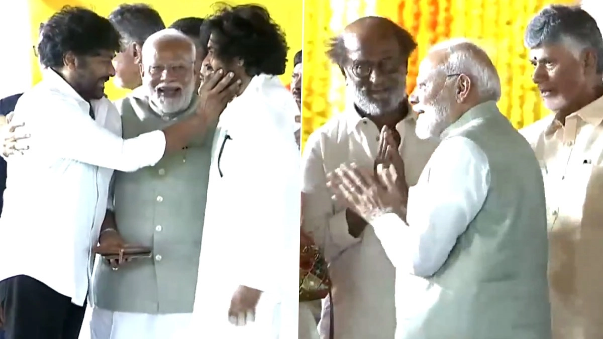 অন্ধ্রপ্রদেশে চন্দ্রবাবু নায়ডুর (Chandrababu Naidu) পশথগ্রহণ অনুষ্ঠানে একেবারে অন্য ছবি দেখা গেল। টিডিপি প্রধানের শপথ অনুষ্ঠানে জনসেনার প্রধান পবন কল্য়াণের সঙ্গে সাক্ষাৎ করেন নরেন্দ্র মোদী। শুধু তাই নয়, পবন কল্যাণ এবং তাঁর দাদা সুপারস্টার চিরঞ্জীবীর হাত ধরে তাঁদের মঞ্চে নিয়ে আসেন এবং গল্প করেন মোদী। সেই সঙ্গে একই মঞ্চে দেখা যায় দক্ষিণী সিনেমার সুপারস্টার রজনীকান্তকেও। স্ত্রীকে নিয়ে রজনীকান্ত নায়ডুর শপথে হাজির হয়ে মোদীর সঙ্গে সাক্ষাৎ করেন। নায়ডুর তারকা-খচিত শপথ অনুষ্ঠানে মোদীর সঙ্গে সাক্ষাতে হাজির হন নন্দমুরি বালাকৃষ্ণও।