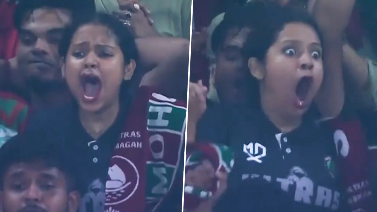 Mohun Bagan Fans Video: আইএসএল ২০২৪-২৫ (ISL 2024-25) মরসুমের ফাইনালে ঐতিহাসিক জয় পেয়ে শিরোপা ছিনিয়ে নিয়েছে মোহন বাগান সুপার জায়ান্ট (Mohun Bagan Super Giants)। শনিবার, ১২ এপ্রিল রাতে কলকাতার যুবভারতী ক্রীড়াঙ্গনে বেঙ্গালুরু এফসির (Bengaluru FC) বিপক্ষে ২-১ গোলে জয়লাভ করে সবুজ-মেরুন ব্রিগেড। মোহনবাগানের নায়ক দিমিত্রি পেত্রাতোস (Dimitri Petratos) কাল গোল করতে না পারলেও নতুন তারকা হিসেবে উঠে আসেন জেসন কামিংস (Jason Cummings)। তার পেনাল্টি থেকে গোলে খেলা সমতায় ফেরে। এর আগে আলবার্তো রদ্রিগেজের (Alberto Rodriguez) আত্মঘাতী গোলে কিছুটা বিপদে পড়ে দল। শেষে খেলা যখন ১-১ ব্যবধানে ফুলটাইম তখন অতিরিক্ত সময়ে জেমি ম্যাকলারেনের (Jamie Maclaren) গোলে মাঠ কাঁপিয়েছে মোহনবাগান। জয়ের পর থেকেই রাজধানী কলকাতায় শুরু হয়েছে ভক্তদের অবিশ্বাস্য উৎসব। সেই জয়ের গোলের মুহূর্তে মোহনবাগানের প্রতি এক ফ্যান গার্লের আবেগের ভিডিও সোশ্যাল মিডিয়ায় বেশ ভাইরাল হয়েছে। ISL 2024-25 Awards: গোল্ডেন বুট থেকে গোল্ডেন গ্লাভস, একনজরে আইএসএল ২০২৪-২৫ অ্যাওয়ার্ড জয়ীরা