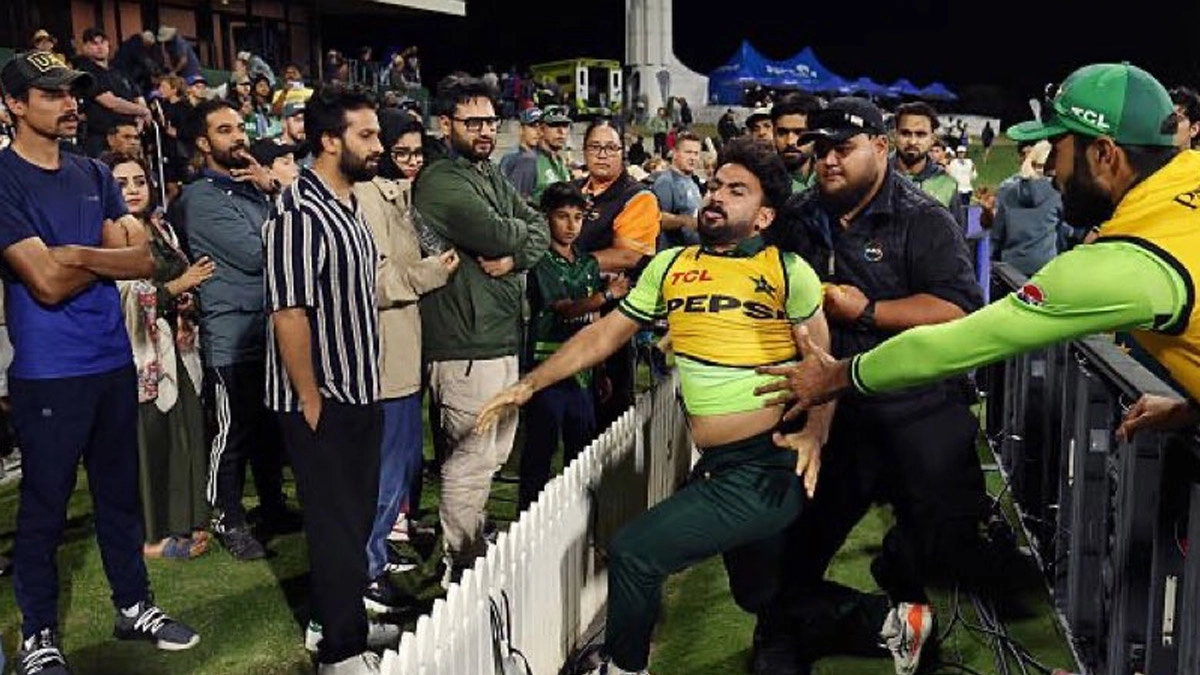 Khusdil Shah Clash with Fan, Cricket Viral Video: আজ, শনিবার (৫ এপ্রিল) মাউন্ট মাউনগানুইয়ের বে ওভালে কয়েকজন দর্শকের সঙ্গে ঝামেলায় জড়িয়ে পড়েন পাকিস্তানি ক্রিকেটার খুশদিল শাহ (Khusdil Shah)। ঘটনা এত বেড়ে যায় যে বেড়া টপকে সমর্থকদের দিকে তেড়ে যাওয়ার চেষ্টা করেন খুশদিল, এরপর নিরাপত্তারক্ষীরা তাকে এসে কোনোভাবে আটকান। নিউজিল্যান্ডের বিপক্ষে তৃতীয় ও ফাইনাল ওয়ানডেতে পাকিস্তানের ৪৩ রানের হারের পরে এই ঘটনাটি ঘটেছে বলে জানা গিয়েছে। আজকের লজ্জার হারে ০-৩ ব্যবধানে সিরিজে হোয়াইটওয়াশ হয়েছে রিজওয়ানরা। ম্যাচ শেষ হওয়ার পর বাউন্ডারি দড়ির কাছে শুরু হয় পাক ক্রিকেটার এবং ভক্তদের মধ্যে ঝামেলা। সোশ্যাল মিডিয়ায় ভাইরাল হওয়া সেই ভিডিওতে দেখা যাচ্ছে, খুশদিল শাহকে নিরাপত্তারক্ষীরা আটকে রেখেছেন। এক ভক্তকে তার দিকে তাকিয়ে আক্রমণাত্মক চিৎকার করছেন। পরিস্থিতি নিয়ন্ত্রণে আনতে আগে আরেক নিরাপত্তা কর্মকর্তা তাঁকে মাঠ থেকে টেনে হিঁচড়ে নিয়ে যাচ্ছেন। NZ vs PAK Lights Out, Cricket Viral Video: মাঠ জুড়ে ঘুটঘুটে অন্ধকার! নিউজিল্যান্ড বনাম পাকিস্তান ম্যাচে নিভল আলো, দেখুন ভাইরাল ভিডিও