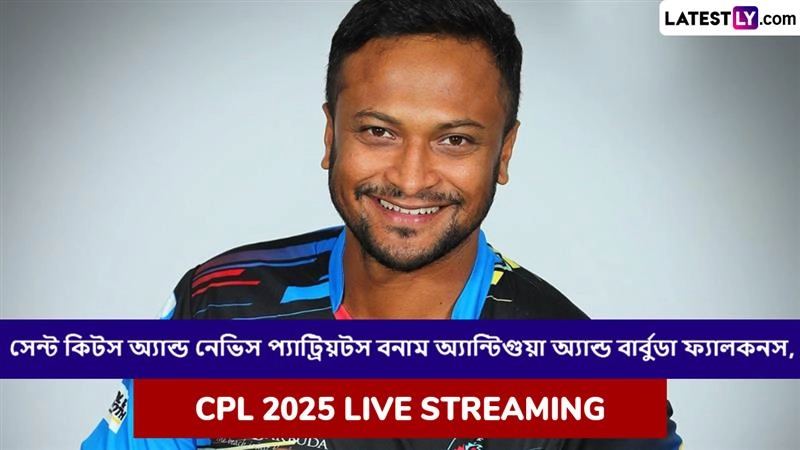 St Kitts and Nevis Patriots vs Antigua and Barbuda Falcons, CPL 2025 Live Streaming: সেন্ট কিটস অ্যান্ড নেভিস প্যাট্রিয়টস বনাম অ্যান্টিগুয়া অ্যান্ড বার্বুডা ফ্যালকনস, (CPL 2025)-এর প্রথম ম্যাচে একে অপরের মুখোমুখি হতে চলেছে। আগামিকাল, ১৫ আগস্ট মুখোমুখি হবে St Kitts and Nevis Patriots বনাম Antigua and Barbuda Falcons। সেন্ট কিটসের বাসস্টোরের ওয়ার্নার পার্কে (Warner Park, Basseterre, St Kitts) আয়োজিত হয়েছে এই ম্যাচ। অ্যান্টিগুয়া ফ্যালকনস গতবার ক্যারিবিয়ান প্রিমিয়ার লিগের পয়েন্ট টেবিলে পঞ্চম স্থানে শেষ করে। দুর্বল পারফরম্যান্সের কারণে তারা প্লে-অফে পৌঁছাতে ব্যর্থ হয়। এবার তাদের দলে সাকিব আল হাসান (Shakib Al Hasan), ফ্যাবিয়ান অ্যালেন (Fabian Allen)-এর মতো অভিজ্ঞ খেলোয়াড় রয়েছে যা দলের আশা বাড়ায়। অন্যদিকে, সেন্ট কিটস শেষবার পয়েন্ট টেবিলের তলানিতে শেষ করে। এবার তাদের দলে জেসন হোল্ডার (Jason Holder) এবং রাইলি রুশোর (Rilee Rossouw) মতো দক্ষ খেলোয়াড় রয়েছে। St Kitts and Nevis Patriots vs Antigua and Barbuda Falcons, CPL 2025 Dream11 Prediction: সেন্ট কিটস অ্যান্ড নেভিস প্যাট্রিয়টস বনাম অ্যান্টিগুয়া অ্যান্ড বার্বুডা ফ্যালকনসের ম্যাচে এগিয়ে কে? কি বলছে CPL 2025 Dream11 Prediction
