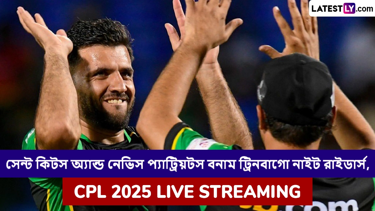 St Kitts and Nevis Patriots vs Trinbago Knight Riders, CPL 2025 Live Streaming: সেন্ট কিটস অ্যান্ড নেভিস প্যাট্রিয়টস বনাম ট্রিনবাগো নাইট রাইডার্স, সিপিএল ২০২৫ (CPL 2025)-এর চার নম্বর ম্যাচে একে অপরের মুখোমুখি হতে চলেছে। আজ, ১৭ আগস্ট মুখোমুখি হবে St Kitts and Nevis Patriots বনাম Trinbago Knight Riders। সেন্ট কিটসের বাসস্টোরের ওয়ার্নার পার্কে (Warner Park, Basseterre, St Kitts) আয়োজিত হয়েছে এই ম্যাচ। প্যাট্রিয়টস তাদের মরসুমটি ভালোভাবে শুরু করে ফ্যালকন্সকে হারিয়ে, কিন্তু অ্যামাজন ওয়ারিয়র্স তাদের হারায়। এরপর ইভিন লুইসকেও (Evin Lewis) চোটের কারণে হারিয়েছ তারা এখন ব্যাটিংয়ে সমস্যায় ভুগছে। অন্যদিকে, ট্রিনবাগো নাইট রাইডার্স গত মরসুমে ভালো ফর্মে ছিল, কিন্তু এলিমিনেটর-এ বার্বাডোস রয়্যালসের কাছে হেরে বাদ পড়ে। বর্তমান তাদের অধিনায়ক পদে এসেছেন নিকোলাস পুরান (Nicholas Pooran)। ১১ ম্যাচে তিনি একটি সেঞ্চুরি এবং তিনটি ফিফটি করেন। St Kitts and Nevis Patriots vs Trinbago Knight Riders, CPL 2025 Dream11 Prediction: সেন্ট কিটস অ্যান্ড নেভিস প্যাট্রিয়টস বনাম ট্রিনবাগো নাইট রাইডার্সের ম্যাচে এগিয়ে কে? কি বলছে CPL 2025 Dream11 Prediction