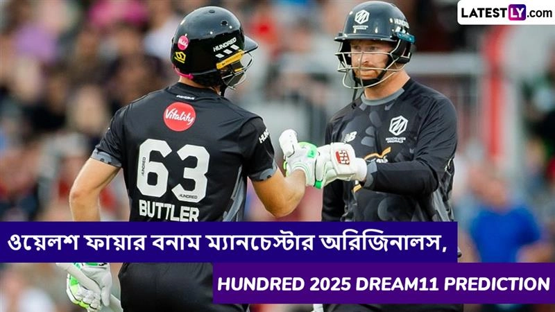 Welsh Fire vs Manchester Originals, The Hundred 2025 Dream11 Prediction: ওয়েলস ফায়ার বনাম ম্যানচেস্টার অরিজিনালস, দ্য হান্ড্রেড ২০২৫ (The Hundred 2025)-এর ১২ নম্বর ম্যাচে একে অপরের মুখোমুখি হতে চলেছে। আজ, ১৩ আগস্ট মুখোমুখি হবে Welsh Fire বনাম Manchester Originals। কার্ডিফের সোফিয়া গার্ডেন্সে (Sophia Gardens, Cardiff) আয়োজিত হয়েছে এই ম্যাচ। খেলার আগে, এখানে Dream XI ফ্যান্টাসি ক্রিকেট টিপস, পিচ রিপোর্ট এবং ম্যাচের নানা খুঁটিনাটি জানানো হল। ওয়েলশ ফায়ার এখনও পর্যন্ত তাদের দুটি ম্যাচ হেরেছে এবং সাত নম্বরে রয়েছে। ওয়েলশ ফায়ার তাদের শেষ খেলা লন্ডন স্পিরিটের বিরুদ্ধে খেলে এবং ৮ রানে হেরে যায়। অন্যদিকে, ম্যানচেস্টার অরিজিনালস তিনটি ম্যাচের মধ্যে একটি জিতেছে এবং ষষ্ঠ স্থানে রয়েছে। ম্যানচেস্টার অরিজিনালও শেষ ম্যাচে লন্ডন স্পিরিটের মুখোমুখি হয় এবং ১০ রানে ম্যাচ জিতে যায়। Southern Brave vs Northern Superchargers, Hundred 2025 Dream11 Prediction: সাউদার্ন ব্রেভ বনাম নর্দার্ন সুপারচার্জার্সের ম্যাচে এগিয়ে কে? কি বলছে The Hundred 2025 Dream11 Prediction