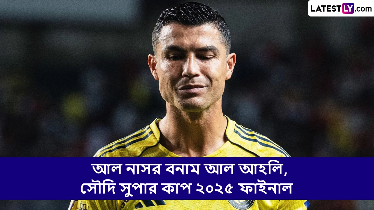 Al Nassr vs Al Ahli, Saudi Super Cup 2025 Final Live Streaming: ক্রিশ্চিয়ানো রোনালদো (Cristiano Ronaldo) আজ শনিবার (২৩ আগস্ট) হংকং স্টেডিয়ামে (Hong Kong Stadium) আল আহলির (Al Ahli) বিরুদ্ধে সৌদি সুপার কাপ ২০২৫ (Saudi Super Cup 2025) ফাইনালে আল নাসরের (Al Nassr) সঙ্গে তার প্রথম অফিসিয়াল ট্রফি জেতার লক্ষ্য নিয়ে মাঠে নামবেন। রোনালদোর আল নাসরের জন্য দুর্দান্ত গোল করার রেকর্ড থাকা সত্ত্বেও, ২০২৩ সাল থেকে এই সৌদি ক্লাবে যোগ দেওয়ার পর থেকে এখনও পর্যন্ত কোনো অফিসিয়াল ট্রফি জেতেননি। ক্রিশ্চিয়ানো রোনালদো আল নাসরের জন্য ১০০ গোল করার থেকে মাত্র এক গোল দূরে রয়েছেন। রোনালদো আল নাসরেকে ফাইনালে পৌঁছাতে গুরুত্বপূর্ণ ভূমিকা পালন করেন। তিনি সেমিফাইনালে সৌদি প্রো লিগের চ্যাম্পিয়ন আল ইত্তিহাদের বিরুদ্ধে জোয়াও ফেলিক্স (Joao Felix)-কে বিজয়ী গোলের জন্য অ্যাসিস্ট করেন। Will Cristiano Ronaldo Play in India? এফসি চ্যাম্পিয়নস লিগের ম্যাচ খেলতে ভারতে কি আসবেন ক্রিশ্চিয়ানো রোনালদো?