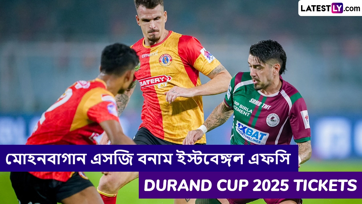 Mohun Bagan SG vs East Bengal FC Tickets:ডুরান্ড কাপ ২০২৫ (Durand Cup 2025) কোয়ার্টারফাইনালের সূচি ঘোষণা হয়ে গেছে ইতিমধ্যেই। সেই সূচিতে সবচেয়ে বড় এবং উল্লেখযোগ্য ম্যাচ হল মোহনবাগান সুপার জায়ান্ট (Mohun Bagan SG) এবং ইস্টবেঙ্গল এফসির (East Bengal FC) মধ্যে কলকাতা ডার্বি (Kolkata Derby)। একদিকে যেমন মোহনবাগান সুপার জায়ান্ট গ্রুপ 'বি' জয়ী হয়েছে অন্যদিকে, ইস্টবেঙ্গল এফসি গ্রুপ এ জয়ী হয়ে এই ম্যাচে অংশ নেবে। আগামী ১৭ আগস্ট চিরপ্রতিদ্বন্দ্বী মোহনবাগান সুপার জায়ান্ট এবং ইস্টবেঙ্গল এফসির ম্যাচ আয়োজিত হয়েছে। দুই দলেরই গ্রুপ পর্যায়ে অপরাজিত থাকার রেকর্ড রয়েছে। যেখানে মোহনবাগান ১৭টি ডুরান্ড কাপ রয়েছে তেমনই ইস্টবেঙ্গলের আছে ১৬টি কাপ। কাঁটায় কাঁটায় হওয়া এই ম্যাচের হাইপ তাই অবধারিত। তবে অনলাইনে, অফলাইনে কীভাবে কিনবেন মোহনবাগান এসজি বনাম ইস্ট বেঙ্গল এফসি, ডুরান্ড কাপ ২০২৫ টিকিট? নীচে সব বিস্তারিত জানানো হল। Durand Cup 2025 Quarter Final: ডুরান্ড কাপের গ্রুপ পর্বের খেলা শেষে সামনে এল কোয়ার্টার ফাইনালের সূচী, ১৭ আগস্ট মুখোমুখি মোহন-ইস্ট