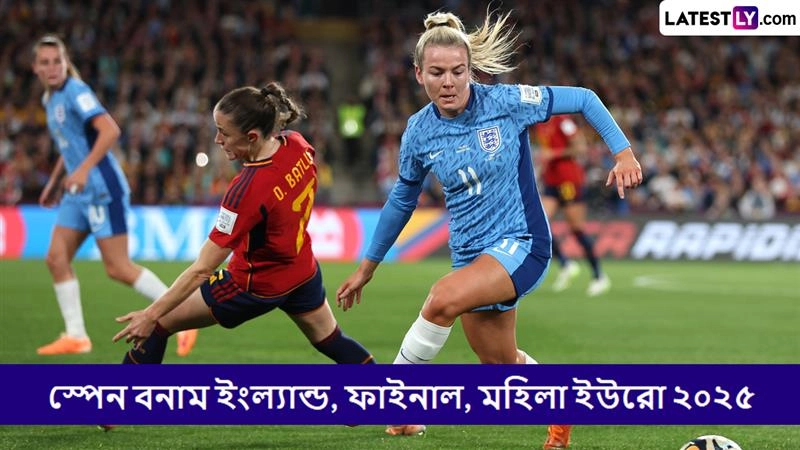 Spain vs England, EURO Women 2025 Final Live Streaming: উয়েফা মহিলা ইউরো চ্যাম্পিয়নশিপের (EURO Women 2025) ফাইনালে সুইজারল্যান্ডের বেসেলে সেন্ট জ্যাকব পার্কে আজ ইংল্যান্ডের মুখোমুখি হবে স্পেন। একদিকে যেমন প্রথম ইউরোপীয় শিরোপা অর্জনের জন্য প্রস্তুত রয়েছে স্পেন অন্যদিকে, তাদের সামনে বর্তমান চ্যাম্পিয়ন ইংল্যান্ড। কোয়ার্টারফাইনালে সুইজারল্যান্ডকে ২-০ ব্যবধানে হারানোর পর, স্পেন সেমিফাইনালে জার্মানিকে ১-০ গোলে পরাজিত করে। অন্যদিকে, ইংল্যান্ড কোয়ার্টারফাইনালে সুইডেনকে পেনাল্টি শুটআউটে হারিয়ে ইতালির বিরুদ্ধে শেষ ম্যাচে ২-১ ব্যবধানে জয় তুলে নেয়। এখানে উল্লেখ্য, এই ম্যাচটি হবে ফিফা মহিলা বিশ্বকাপ ২০২৩ সালের ফাইনালের পুনরাবৃত্তি, যেখানে লা রোজা জয়ী হয়েছিল। দুই দলের মধ্যে শেষ সাতটি ম্যাচের মধ্যে ছয়টি এক গোলই জয় নির্ধারিত হয়েছে। তবে একটি ম্যাচ রয়েছে স্কোরলেস ড্র হিসেবে। India Champions vs England Champions, WCL 2025 Live Streaming: ভারত চ্যাম্পিয়নস বনাম ইংল্যান্ড চ্যাম্পিয়নস, ওয়ার্ল্ড চ্যাম্পিয়নশিপ অফ লেজেন্ডস ২০২৫, সরাসরি দেখবেন যেখানে