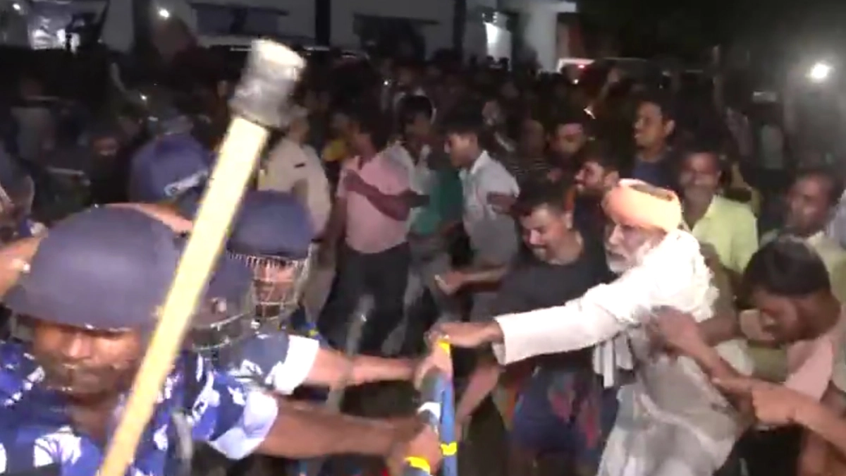 গ্রামবাসীদের সঙ্গে পুলিশের ধস্তাধস্তি