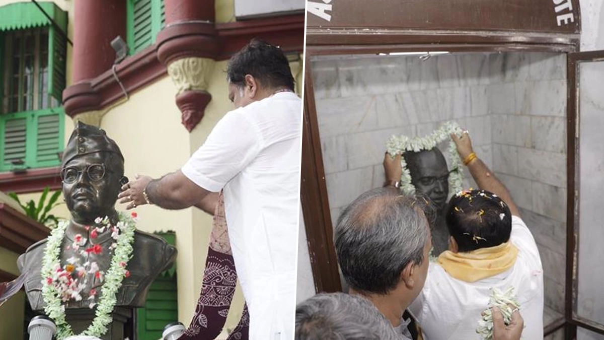 On Paschimbanga Dibas, paid homage at the ancestral home of Bharat Kesari Dr. Syama Prasad Mookerjee in Bhawanipur — the architect of West Bengal, the sacred homeland of Bengali Hindus. Offered floral tributes at his statue with deep reverence. #PaschimbangaDibas pic.twitter.com/QSRdrCPsja
