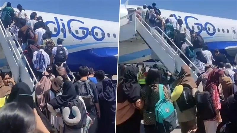 দিল্লিগামী বিমানে উঠছেন ভারতীয় পড়ুয়ারা...