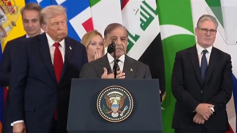 ট্রাম্প, মেলোনি, কেইর স্টারমেরদের মাঝে দাঁড়িয়ে শেহবাজ় শরিফ বলেন, মার্কিন প্রেসিডেন্ট ডোনাল্ড ট্রাম্প একজন দারুণ মানুষ। তিনি যেভাবে ভারত, পাকিস্তানের যুদ্ধ থামিয়েছেন, তা প্রশংসার যোগ্য। সম্প্রতি আরও একবার সংঘর্ষ বিরতি করিয়েছেন ট্রাম্প। নিজের দুর্দান্ত টিমকে নিয়ে ট্রাম্প যে কাজ করে চলেছেন, তা প্রশংসার যোগ্য বলেও মন্তব্য করেন শেহবাজ় শরিফ।